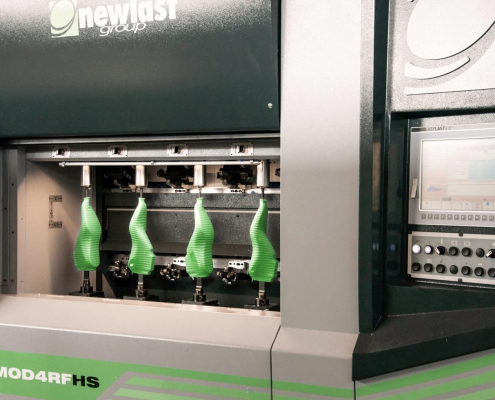 MOD4RF HS è una macchina versatile che esegue in un unico ciclo la sgrossatura e la finitura due paia di forme (plastica o legno), riproducendo i file .FRV™ in tutte le taglie con alta precisione e velocità.