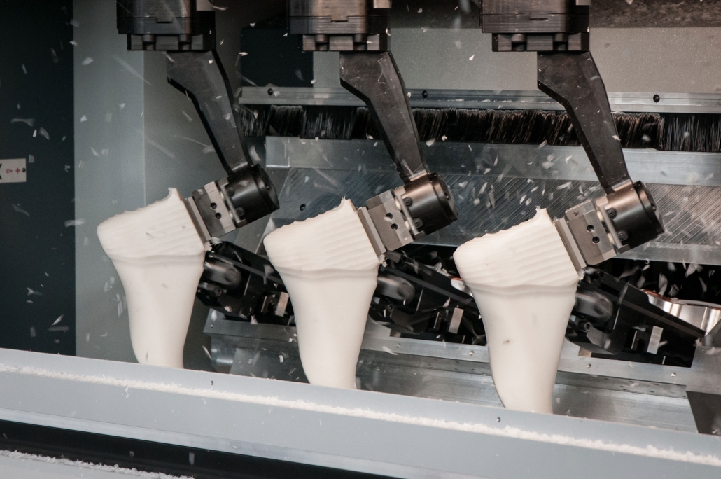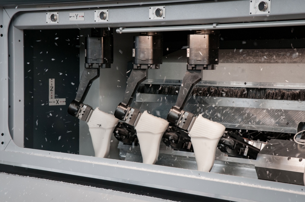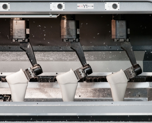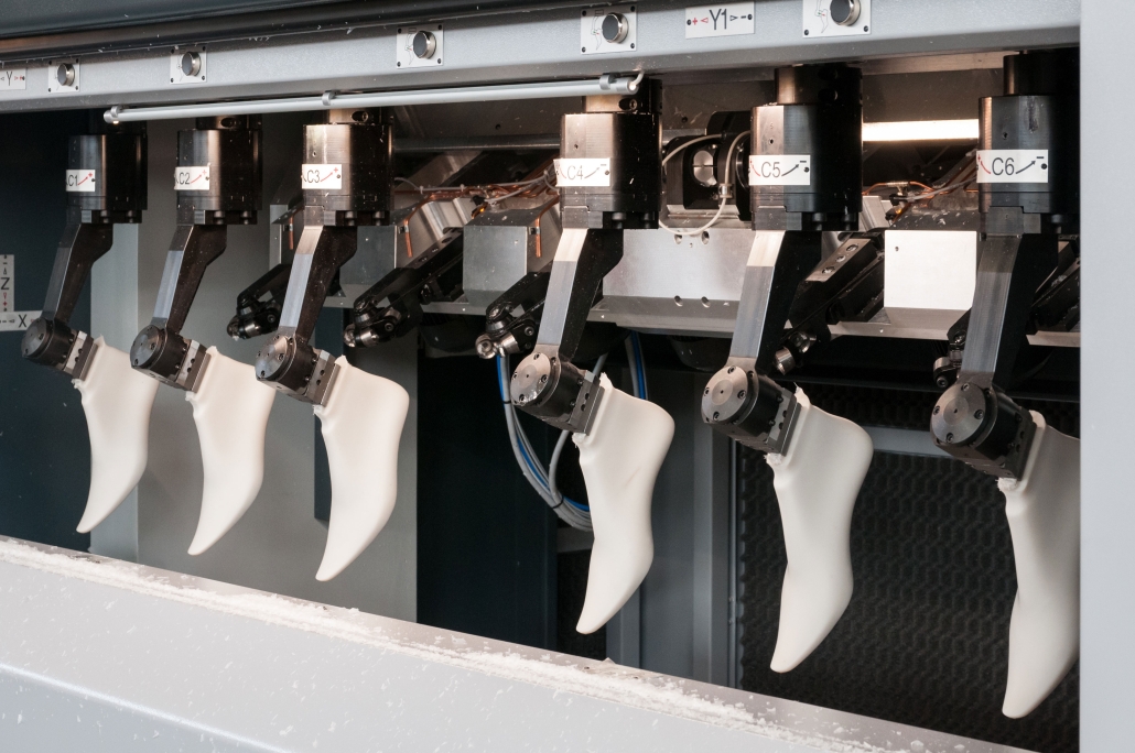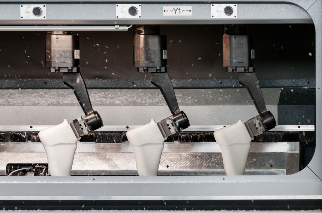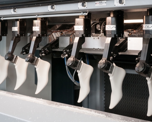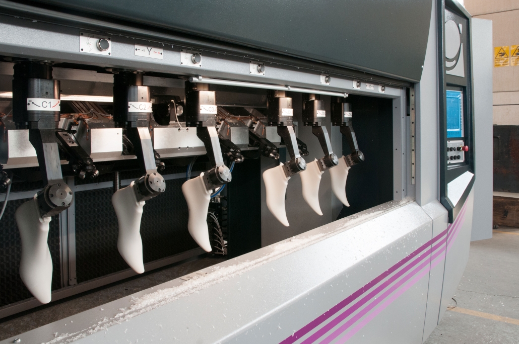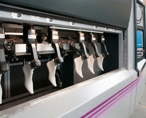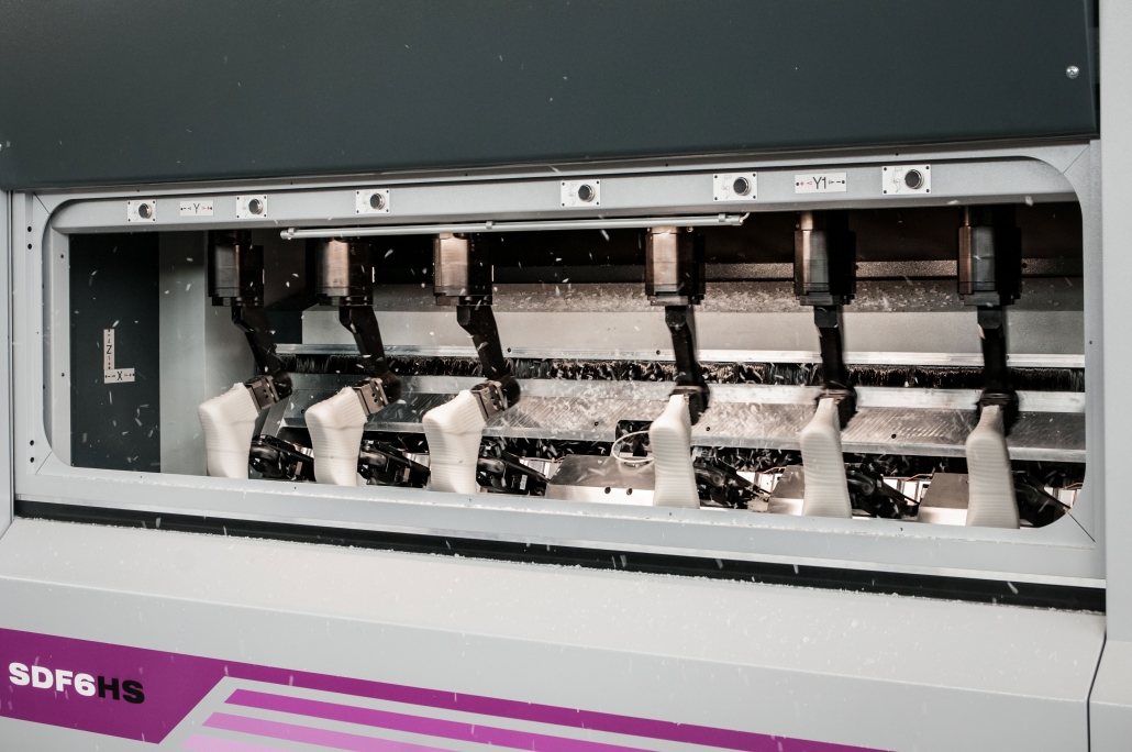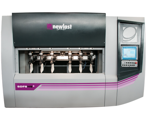 La SDF6 HS+ è la finitrice di ultima generazione progettata per elevata produttività, capace di lavorare tre paia di forme in un unico ciclo. Sfrutta l’innovativo sistema di presa a “coda di rondine” che consente la lavorazione completa della forma (inclusa punta e tallone), eliminando i rischi di deformazione. Grazie ai suoi 9 assi interpolanti, la macchina raggiunge una produzione oraria di circa 40 paia. Consente la riproduzione ad alta precisione dei file .FRV™ in tutte le taglie e permette l’elaborazione del file successivo durante la lavorazione. La tecnologia è un brevetto Newlast Italia.