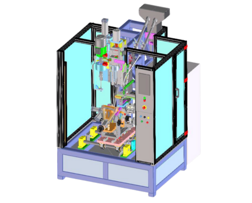 Macchinario automatico per foratura e montaggio molla con veretta